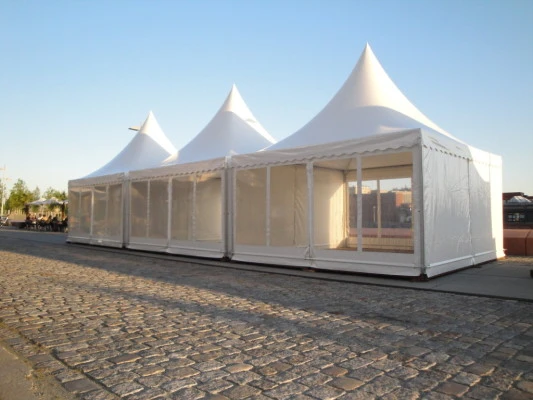 Wir bieten transparente und weiße Seitenwände für die Pagodenzelte an.