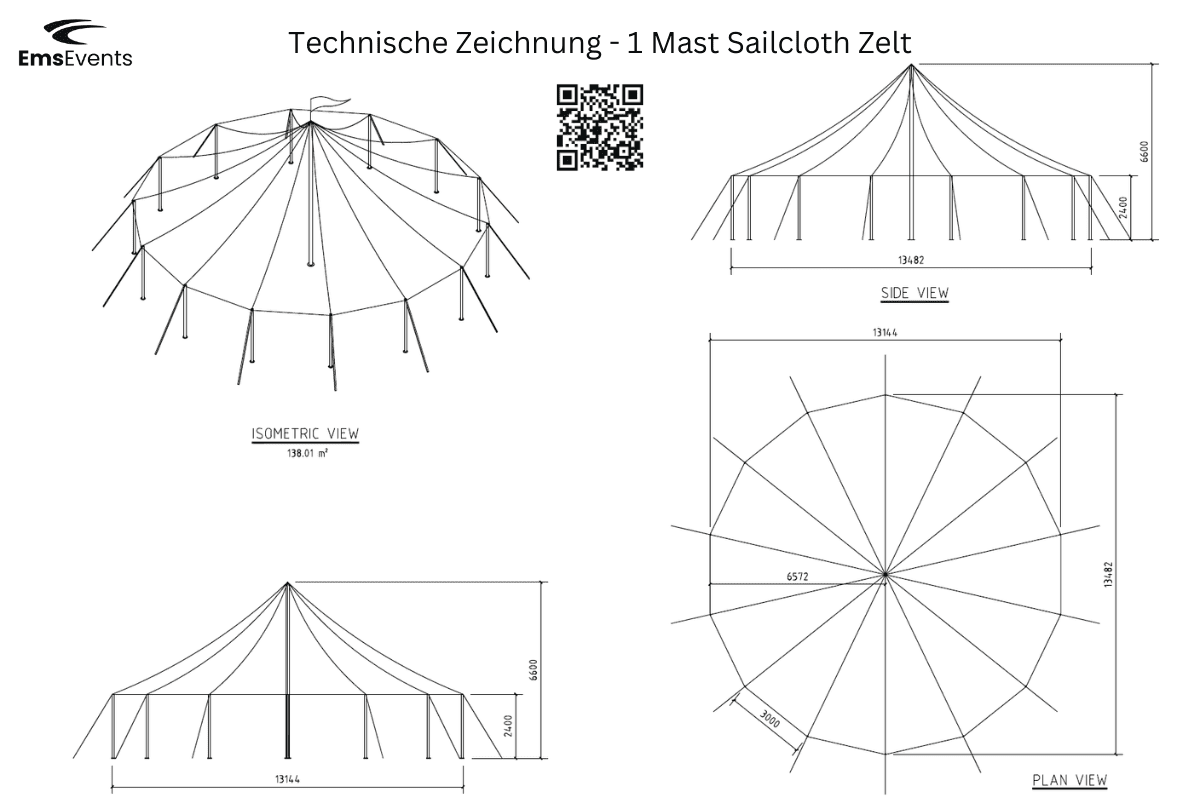 Daten und Infos zum 1-Mast Sailclothzelt mit 140m²:
