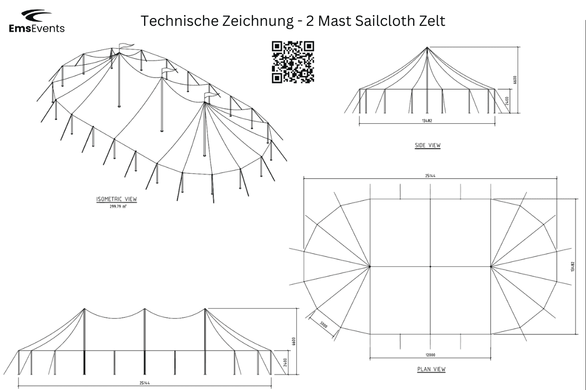 Daten und Infos zum 3-Mast Sailclothzelt mit 307m²: