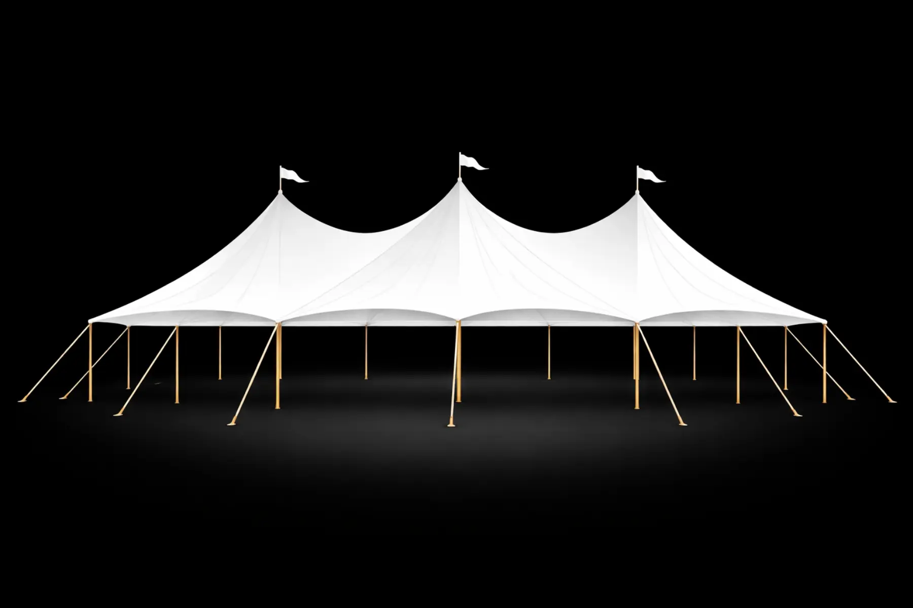 Wer ein besonders großes und hochwertiges Zelt mieten möchte, findet im 3-Mast Sailclothzelt eine eindrucksvolle Lösung für sehr große Veranstaltungen. Durch die drei zentralen Mittelmasten entsteht ein weitläufiges Raumgefühl mit viel Höhe und Licht. Diese Zelte sind vollständig regen- und windfest und können auch in der kälteren Jahreszeit eingesetzt und beheizt werden.