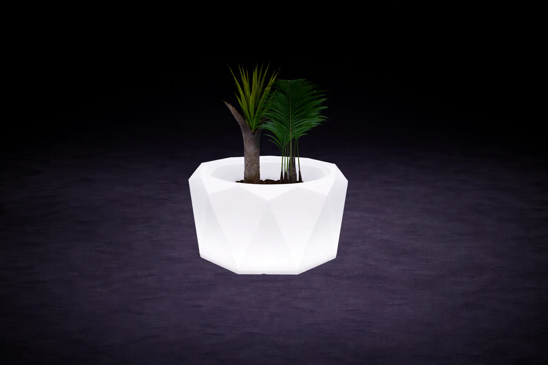 Leuchtender geometrischer LED Blumentopf als futuristisches Design-Highlight für Eingangsbereiche, Lounges und exklusive Event-Locations