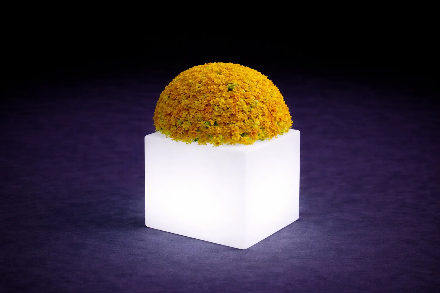 Leuchtender quadratischer LED Blumentopf als modernes Design-Highlight für Eingangsbereiche, Terrassen und exklusive Event-Locations