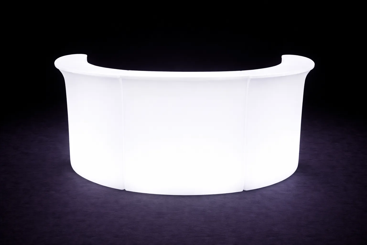 Leuchtendes LED Theken Eckstück als essentielles Verbindungselement oder Abschluss für modulare Bar-Systeme, Empfänge und Events
