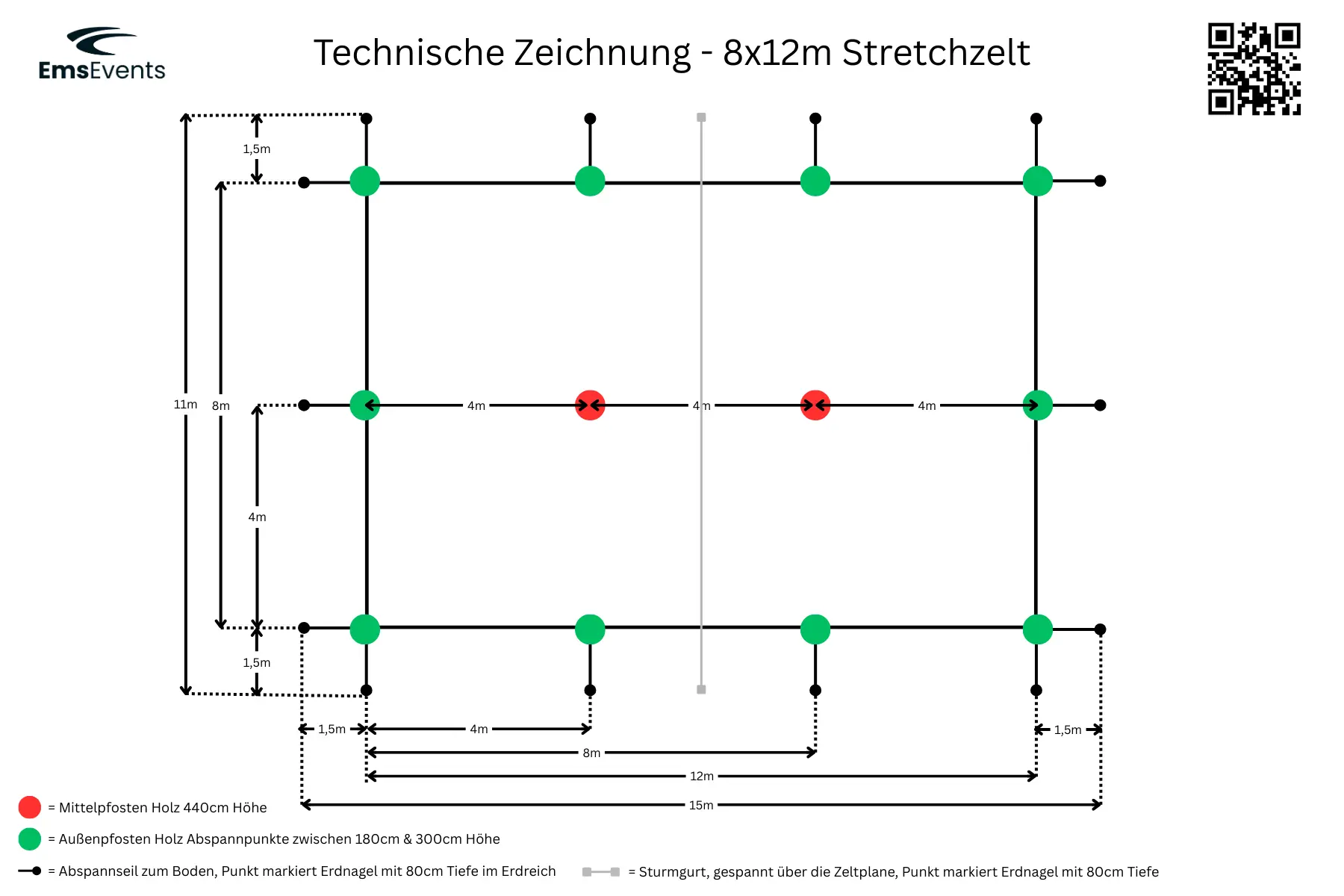 Daten und Infos zum Stretchzelt 8x12m: