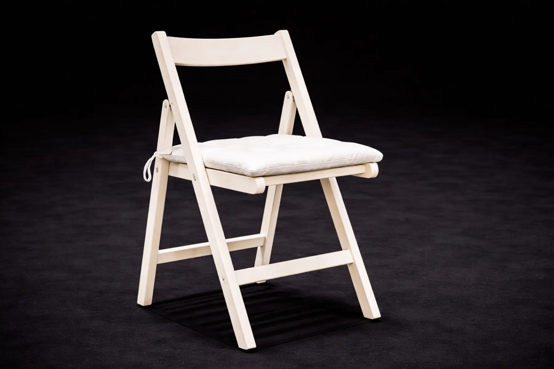 Der Stuhl wird inklusive weißem Sitzkissen vermietet, das den Sitzkomfort erhöht und sich optisch harmonisch in das Gesamtbild einfügt. Dank der klappbaren Konstruktion ist der Stuhl platzsparend zu transportieren und einfach zu handhaben. Durch seine kompakten Maße eignet er sich besonders gut für Selbstabholer.